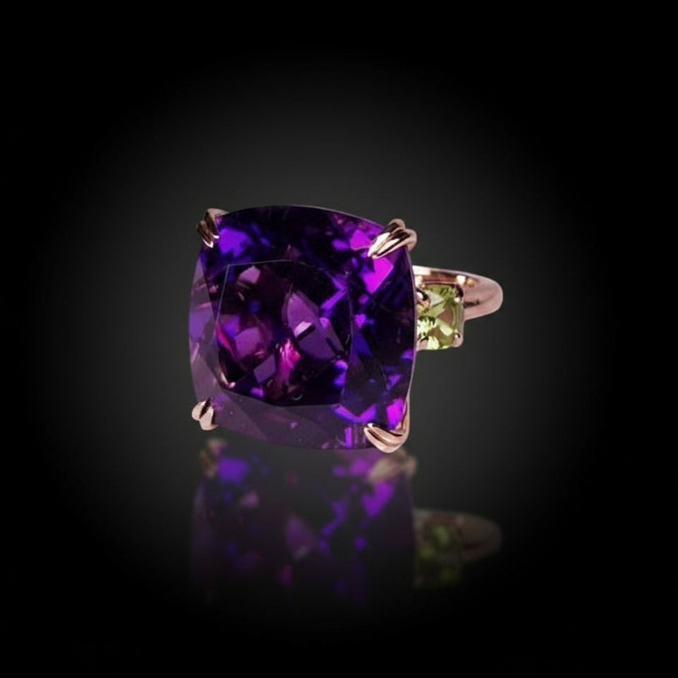 23 ct Royal Purple Amethyst & Peridots - 14k Yellow Gold